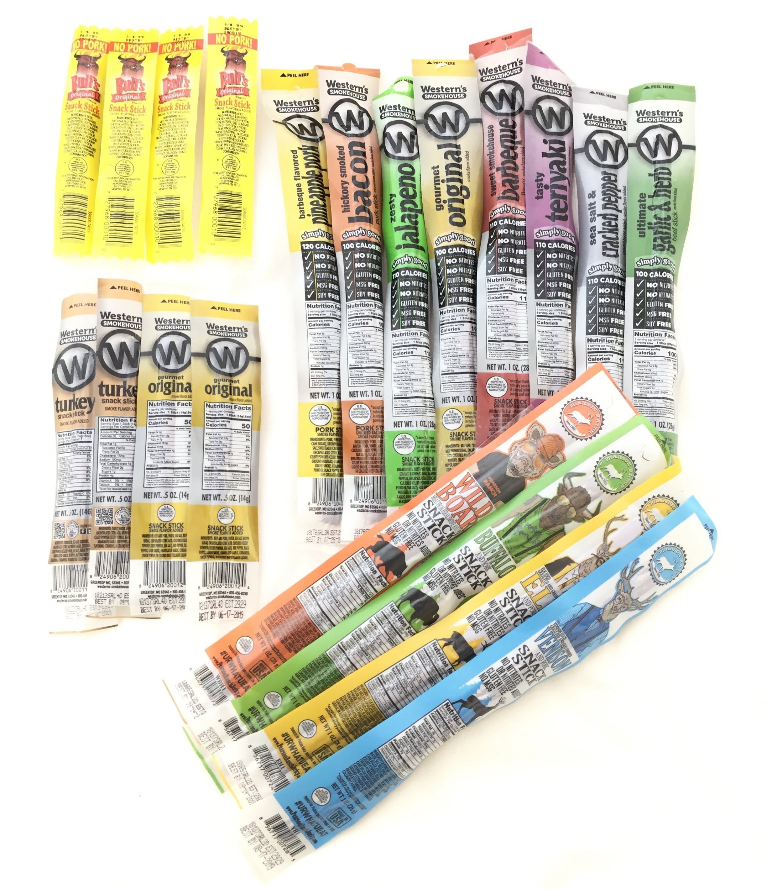 Healthy Exotic Jerky Gift Box Includes Variety Of Pork Rinds Venison Chicken Elk Pork Beef Meat Sticks - Great Gifts For Men USD. Jerky of the Month Club. Healthy Exotic Jerky Gift Box Includes Variety Of Pork Rinds Venison Chicken Elk Pork Beef Meat Sticks - Great Gifts For Men 12 Piece Set 2644 3754.
